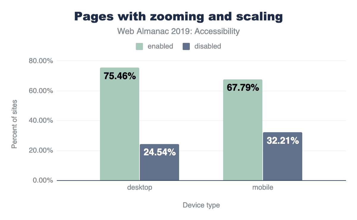 Figure 9.2. Percentage of sites that disable zooming and scaling vs device type.