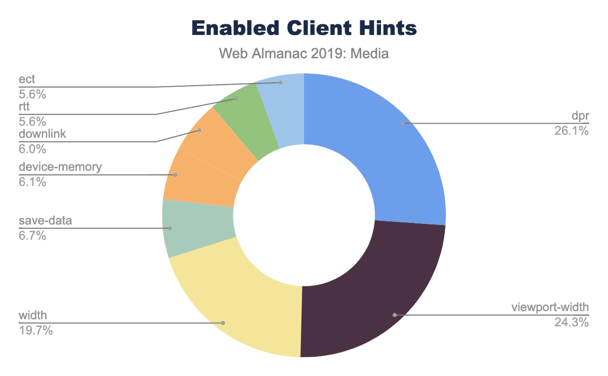 Of the Client Hints invoked, the majority of pages use it for the original three use-cases of DPR, ViewportWidth and Width. Of course, the Width Client Hint that requires the use <img sizes> for the browser to have enough context about the layout.