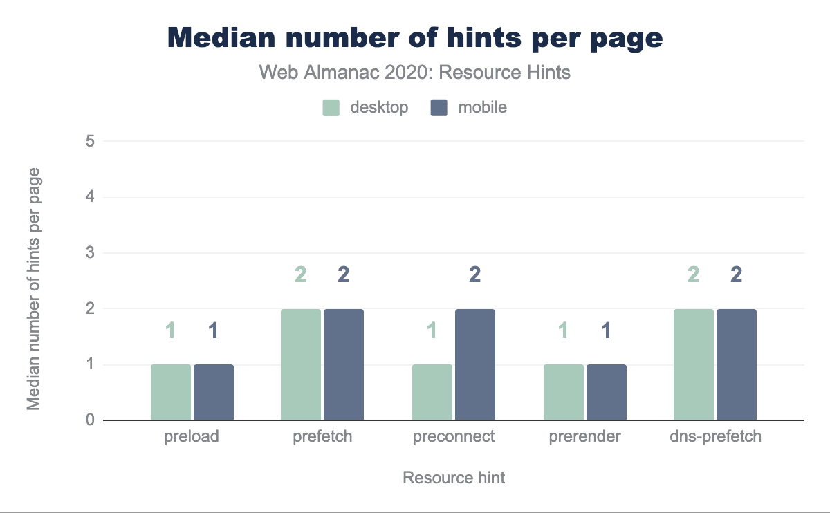 More and more web pages are using the main resource hints, and in 2020 we are seeing the adoption remains consistent between desktop & mobile.
