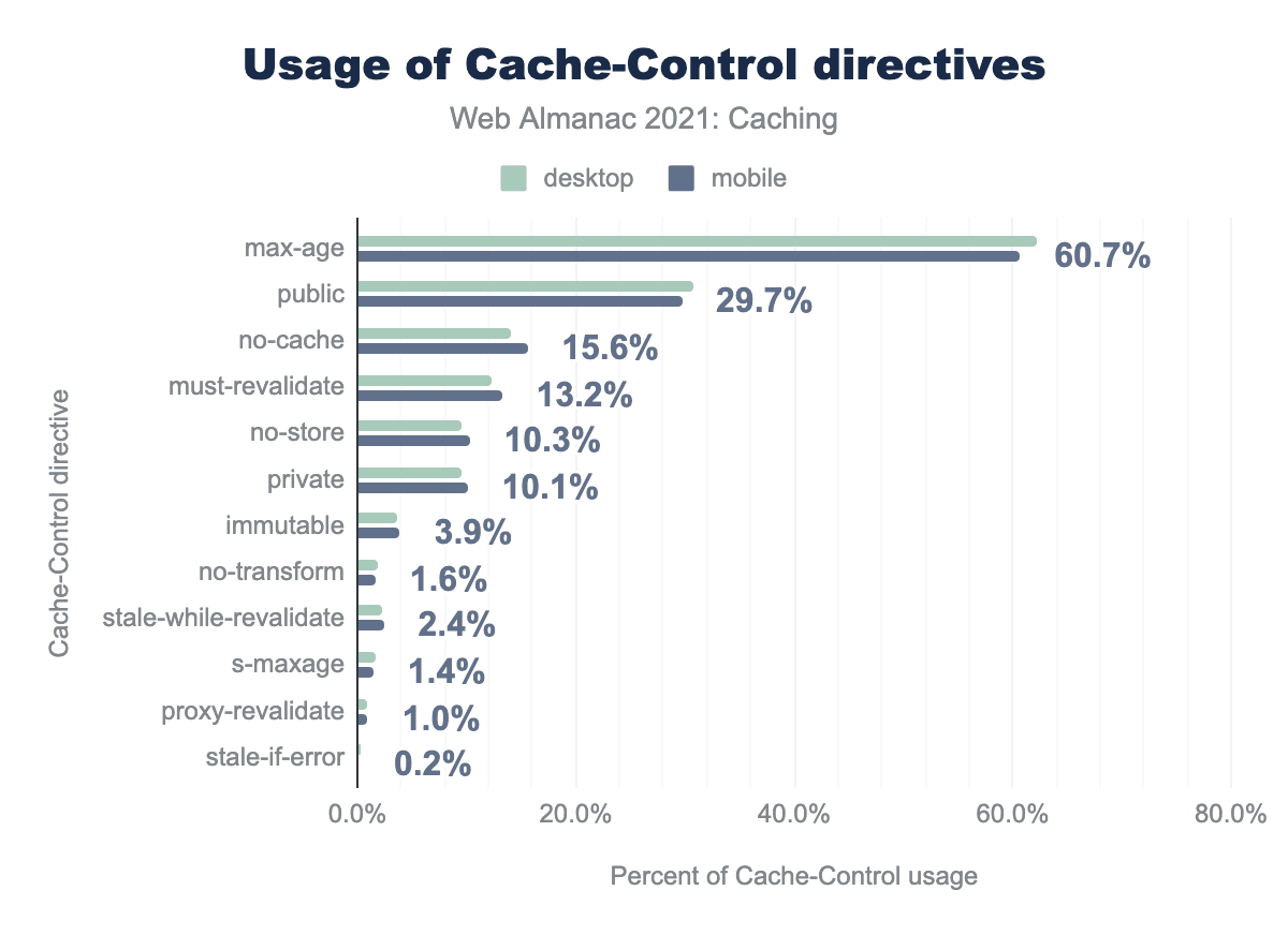 The max-age directive is the most commonly found with 62.2% of desktop requests including a Cache-Control response header with this directive.