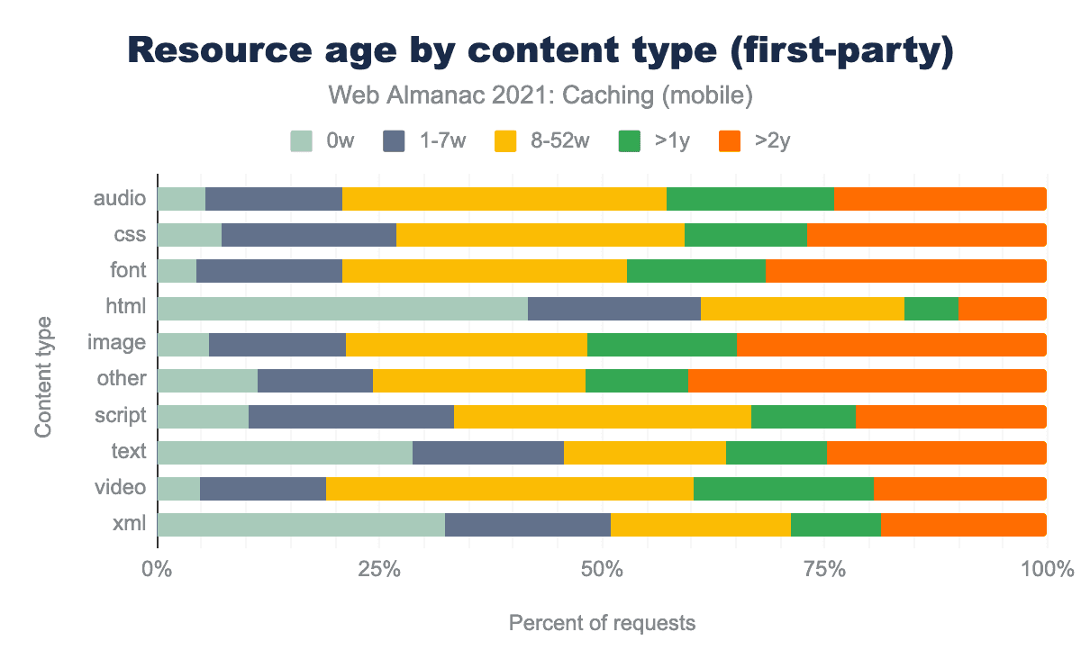 Figure 23.16. Distribution of first-party resource age by content type (mobile only).