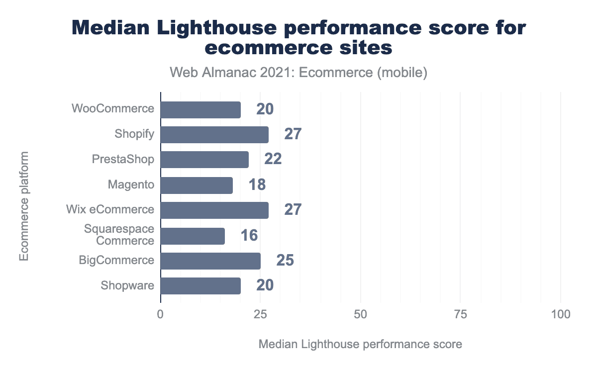 Figure 17.9. Median Lighthouse performance scores for ecommerce websites.