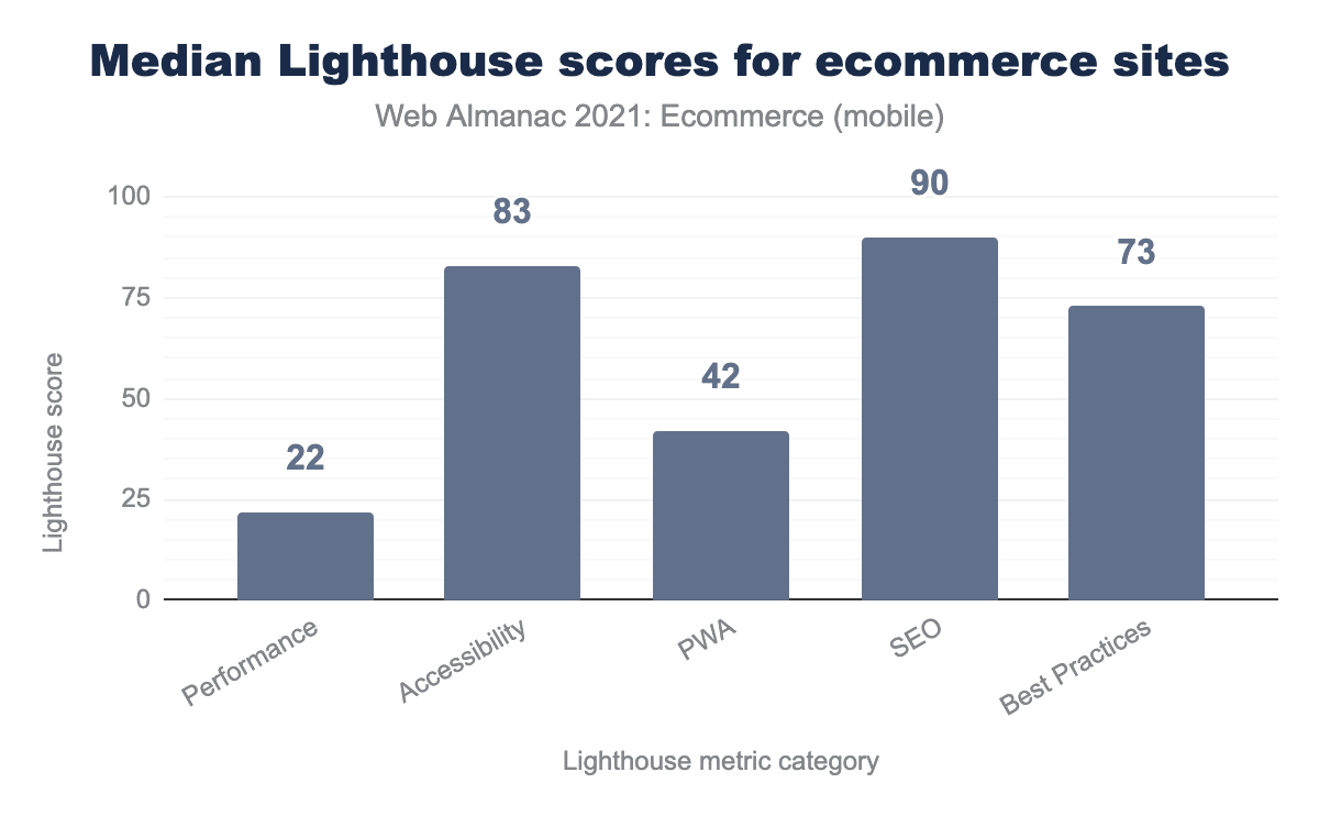 Figure 17.8. Median Lighthouse scores for ecommerce websites.
