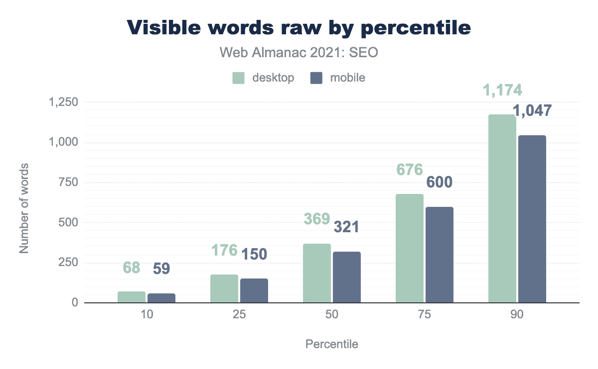 - The median raw mobile page contains 321 words, versus 312 words in 2020.