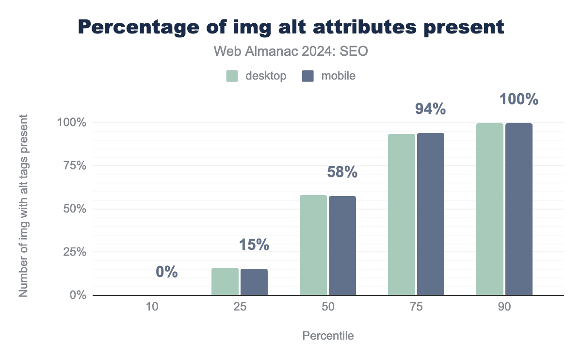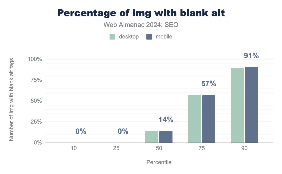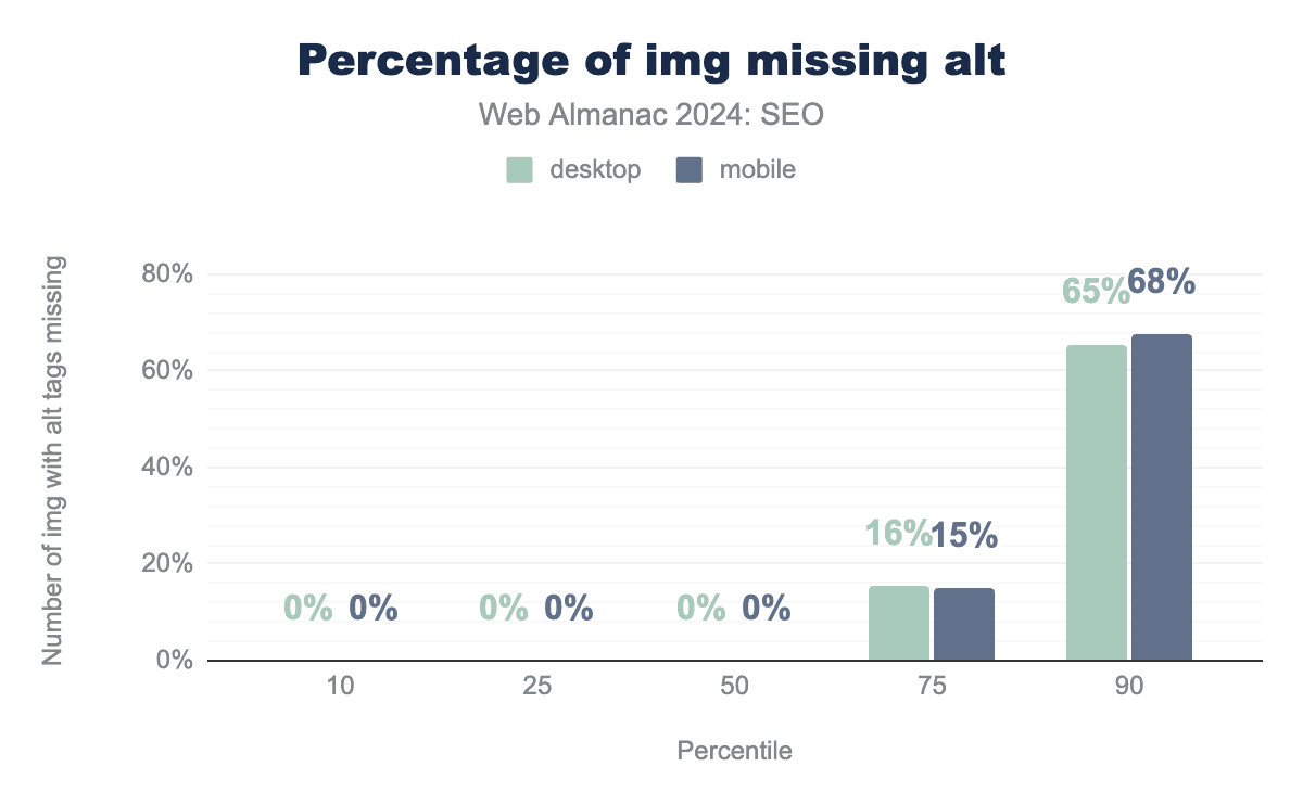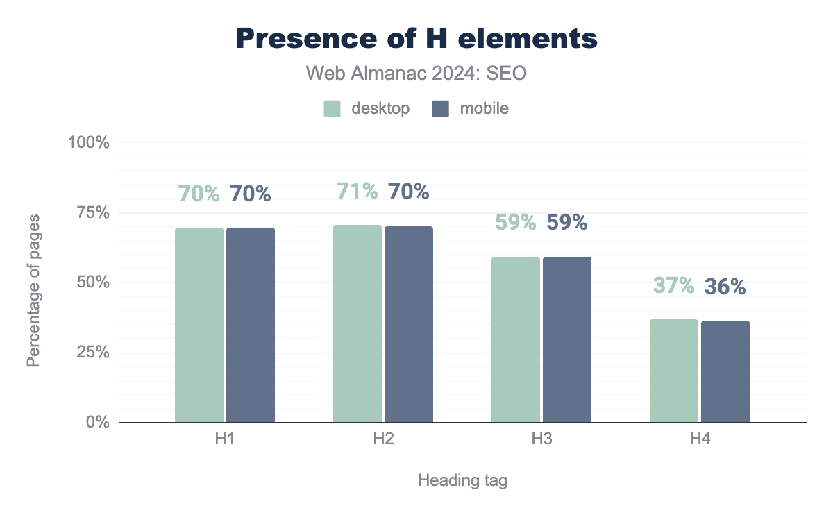 canonical tag usage was up slightly in 2024. In 2022, 61% of mobile and 59% of desktop pages used canonical tags. In 2024, it was up to 65% of mobile and 69% of desktop pages.